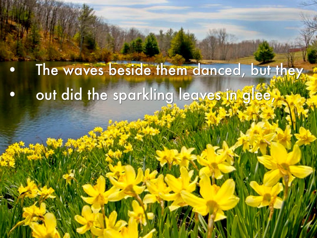 この詩で、Wordsworthは、水仙を人に例えて表現する、Personificationを何度も使っています。